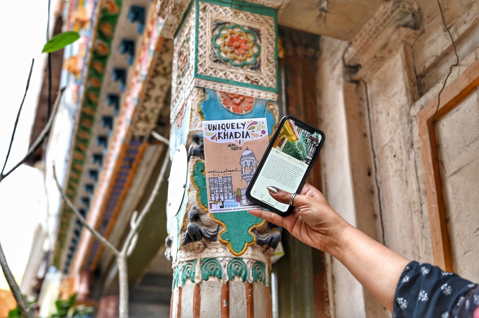 The team involved local artists, illustrators and photographers to make the journey of discovery a creative and spiritual one. Connecting through words, music and visuals enriched the process and also ensured a great output: a well-informed, routed and culturally sensitive combination of a digital application and exquisitely designed maps for two signature Ahmedabad historic neighbourhoods: Khadia and Bhadra.