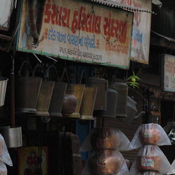 Vipulbhai Kansara, who has operated his family business in the bazaar for over 45 years, shares: “You would think that stainless steel and aluminium would have replaced traditional materials, but here we still use copper and brass. They have many benefits. Firstly, they are ideal for storage as they have antibacterial properties, secondly, the metals are pure and hence can be used in religious ceremonies and finally they are a good investment often included in a bride's trousseau for her financial security.”
