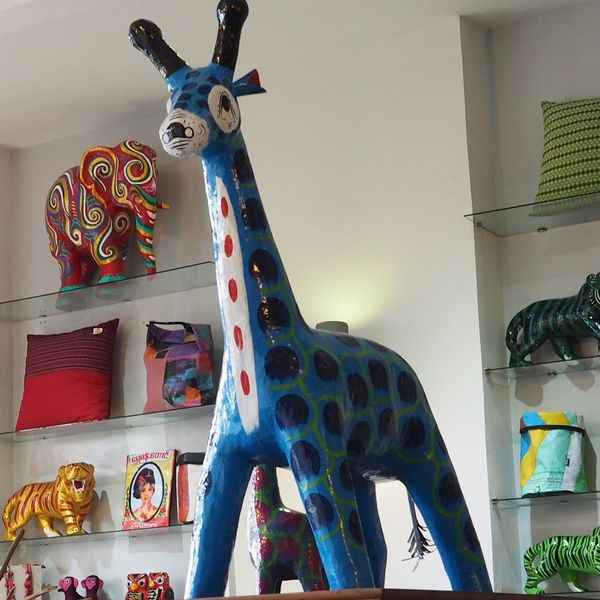 Our favourite items include the papier-mâché animals, a fun take on traditional temple gifts and the cool iPad covers made from recycled plastic rice bags. Prices range from 3,000 to 25,000 Kyat.