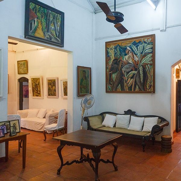 The tile-roofed bungalow is a real gem. This was the much-loved old home of artist Harry Pieris, one of the founding members of Sri Lanka’s famous 43 group and it is packed with what is perhaps the best collection of contemporary Sri Lankan art in the country. It is not just a house, it was a meeting place for the artists of the much-coveted ‘43 group, who carved the face of Sri Lankan contemporary art. All the paintings here are from Harry’s original collection.
