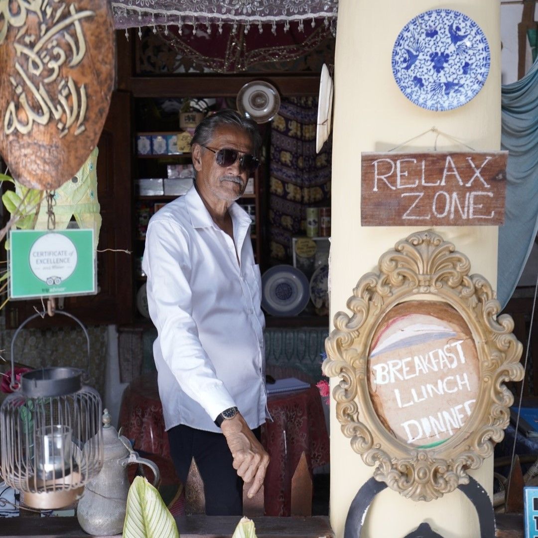 Storyteller and owner of the Royal Dutch Café; Fazal Jiffry Badurdeen