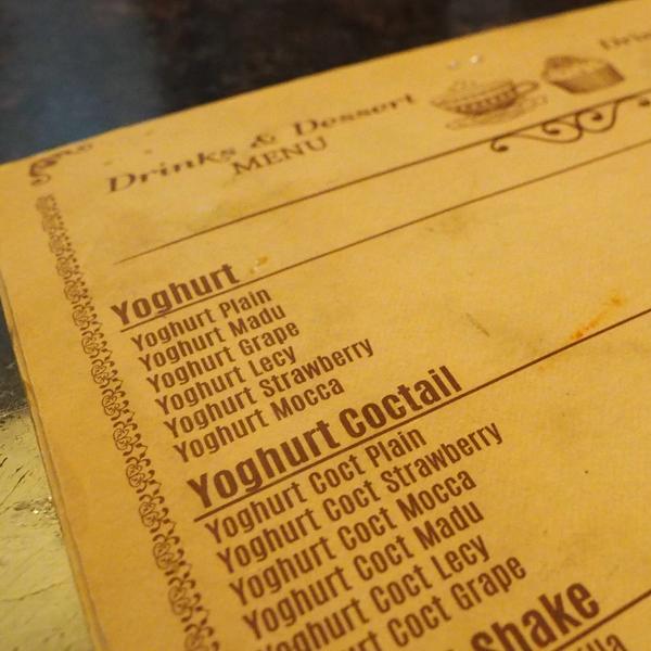 Nostalgia meets hip in this coffee and milk bar. You can’t go wrong by ordering a refreshing glass of milk (Rp. 12.000) or plain yoghurt (Rp. 23.000). In the mood for something a little more adventurous? The yoghurt cocktail (Rp. 29.000- Rp. 32.000) is a great choice. Enjoy it with a cheeky Soes Diplomat (Rp. 6.000), an old Dutch delicacy from the small bakery, if you really want to indulge!
