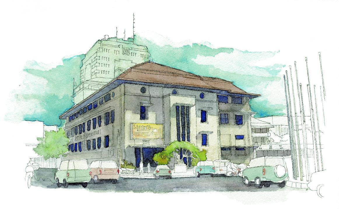 The building was designed by Bandung’s star architect CP Wolff Schoemaker. It was damaged by a fire during the struggle for independence in 1946, but since completely renovated.