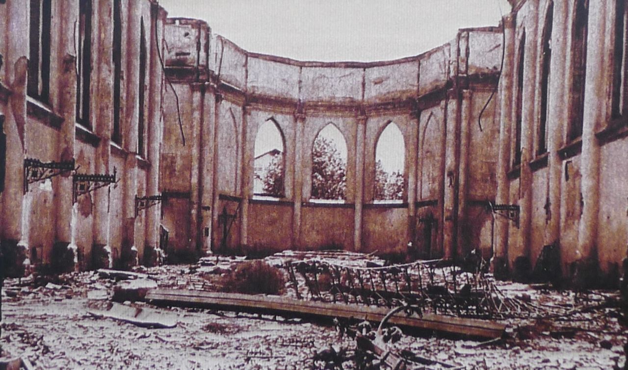 Onze Lieve Vrouwe Kerk (Church of Our Lady) is the oldest church in Surabaya, but there are few original elements, because the tower and stained-glass windows were destroyed in the Surabaya battle.