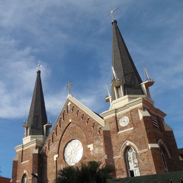 The first stone - which you can still see near the main entrance - was laid in 1899 by Pastor J. van Santen SCJ. In those days the church was an imposing building, the tallest structure in town. The neo-gothic style architecture reminds you of a church building in Europe. Indeed, apart from the wood used, the red bricks and other materials were all imported from Holland.