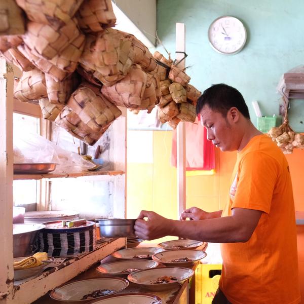 The Tipat Tahu stall has been there for three generations. ‘My grandmother used to run this stall. Now her grandchildren are continuing the business,’ said one of Ngainah’s grandchildren, 34-year-old Yulianto.The Ngainah family starts each day with 10 kilograms of rice, 30 kilograms of bean sprouts, 10 kilograms of peanuts and 300 slices of tofu and they cook until the supplies run out.