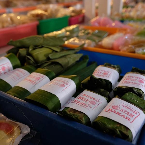 Grab some Paso cake glutinous rice cake with shredded coconut (IDR 1,500) wrapped in a banana leaf.