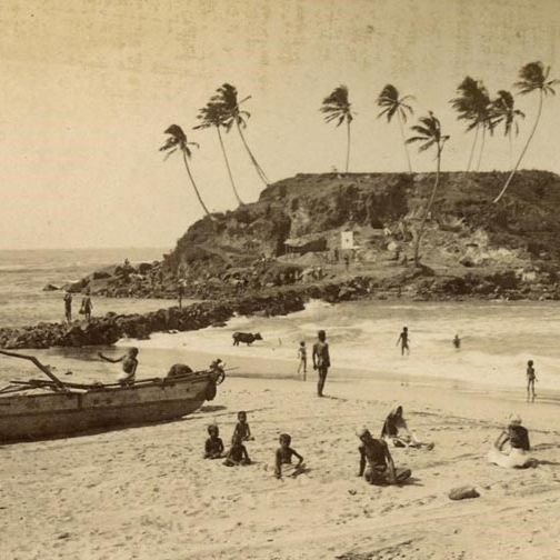 Old maps show the Paravi Duwa shrine with few coconut trees and screwpines on a small offshore island. Buddhist monks from the Siyam Sect settled at this small mountainous drop in the ocean and built statues and a small pagoda here.