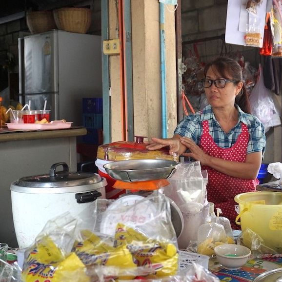 At this typical mini corner store you can find everything you need, from fresh vegetables, herbs, eggs to local sweets. Auntie Jumnian also prepares homemade northern dishes every morning. This is a popular takeaway place among the local community, they usually run out by noon.