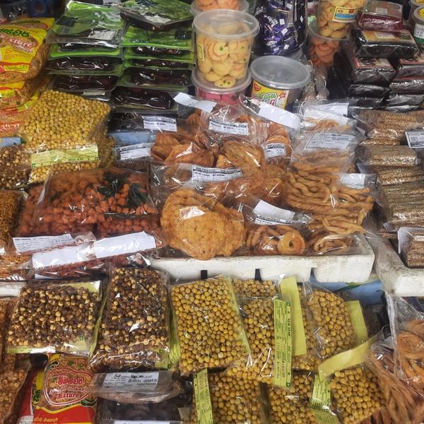The shop is run by Muhaideen and his two sons. It's located in front of the Kali Kovil and the school so many people, especially kids love coming here. They have a lot of imported chocolates and candy too. The shop is famous for Hindu festival sweetmeats that are locally made such as muscat and boondhi.