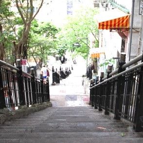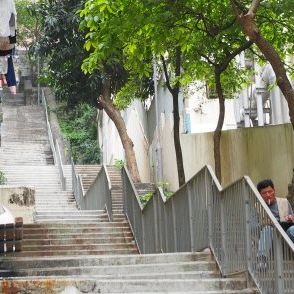 In those days - prior to the convenience of the Mid-Levels Escalator - people commuted up and down by sedan chair and the design of the ‘ladder streets’ was to make it easier for the ‘coolies’, the strong men who carried these chairs, enabling them to traverse the steep slopes. Luckily the design also incorporated a number of flat sections with benches for the coolies to rest.