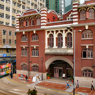 A lone Edwardian survivor amidst towering office buildings, the red brick Western Market is the oldest original surviving market building in Hong Kong. Formerly there were two separate blocks, South Block and North Block, of which only the Northern block remains today.