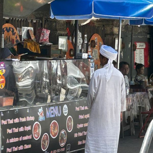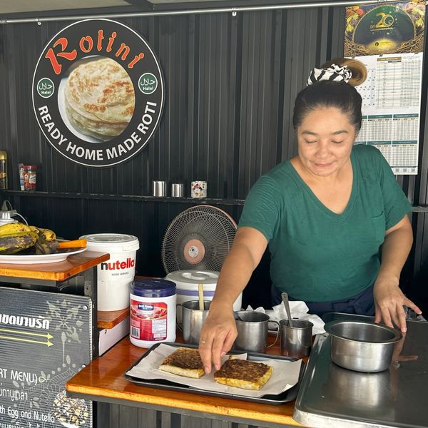 Scattered around the Haroon Mosque are many Halal restaurants. “ROTINI” is one of my favourites, located at Charoen Krung 36 Alley next to the French Embassy. I had ham cheese roti for breakfast but there are various toppings to choose from. If you want something else, try the other restaurants in the alley. The stall next door has a very nice Pad Thai. Prices differ from 25-50 Baht. Check out how they make the roti's ->